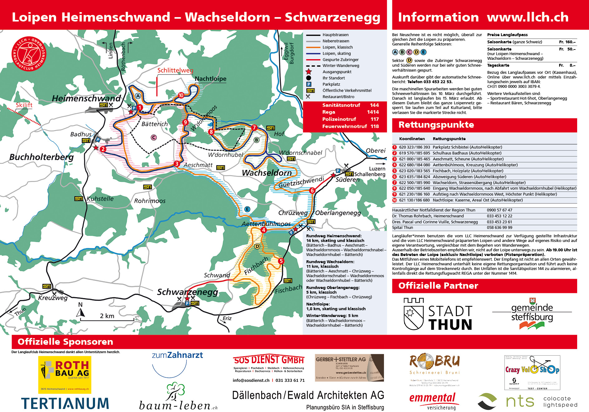 | 11.5 Km | Grosser Rundkurs Heimenschwand (Bätterich / Aeschmatt / Wachseldornhubel / Bätterich) neue Skatingschlaufe Hof / Wachseldorn (Kuenzimoos) plus ca. 3,5 km Klassisch und Skating |