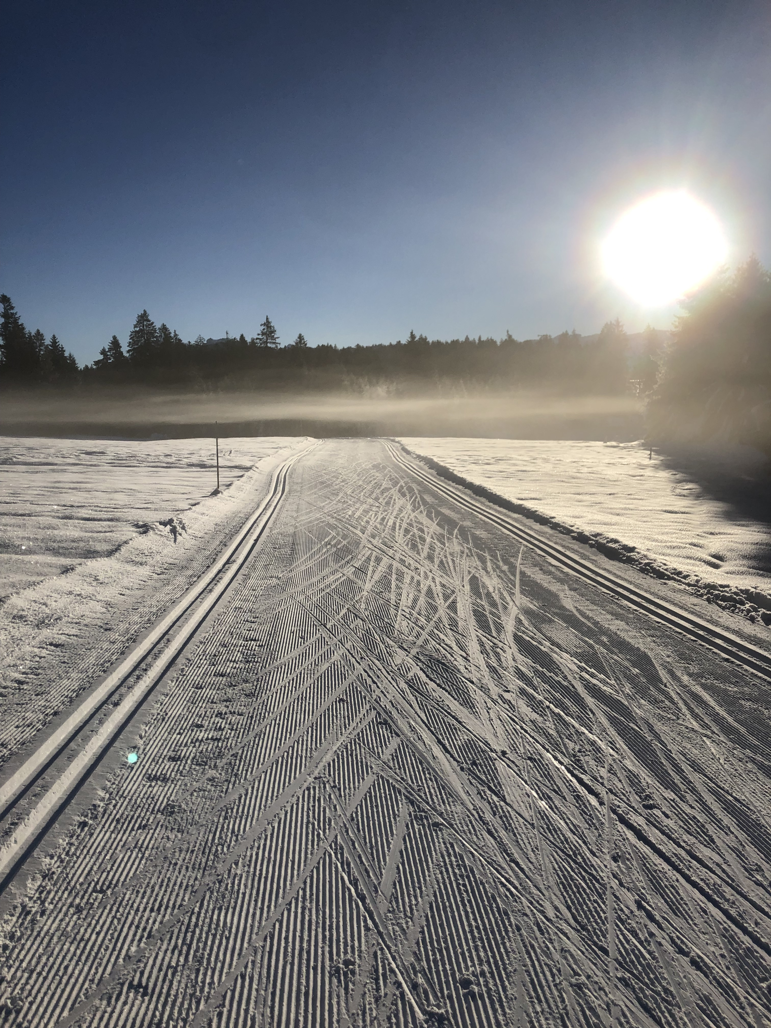 -an alle Hundebesitzer! Wir können keine Hunde auf der Loipe dulden, das ist eine Abmachung zwischen der Loipenorganisation und den Landbesitzern.
